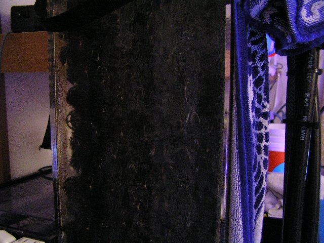ドライ濾過でもこのドライタワーの側面の様にヌメリ分は付着しますので、ウエット濾過に比べればメンテのスパンは長いですが、定期的なメンテはやはり不可欠です。