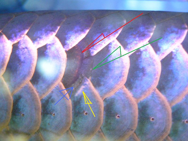 赤い矢印......これは鱗の下にあるもう一枚の鱗です。