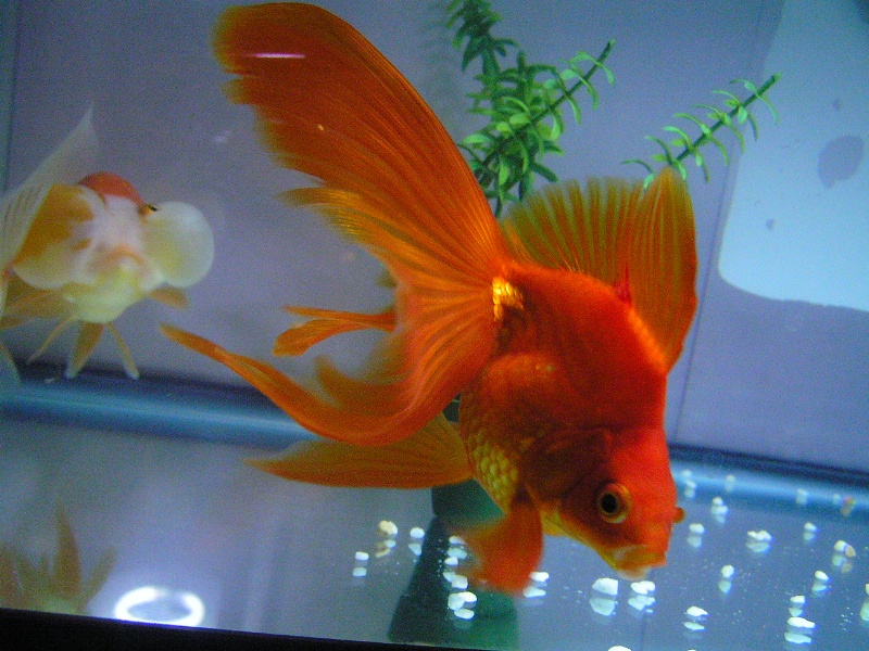 我が家の藍底守護神龍の背鰭や尾鰭の付け根に紅い色素が滲んできてますが、アスタキサンチンを多く含んだ餌を永年与えた結果、鰭の末端から色素が滲んで来たと考えたいですね(希望的観測)