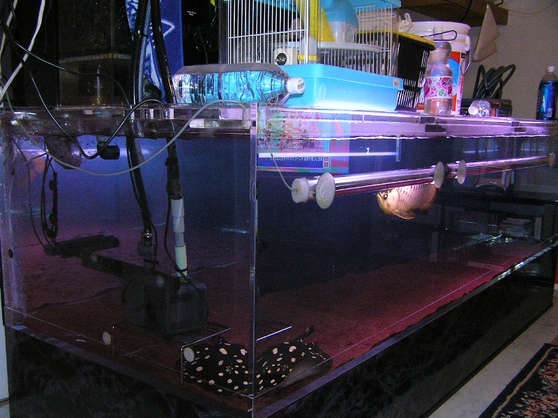 ここに居たエイが2400水槽に移動した事で、藍底過背金龍の飼育という事を考えれば背面&側面も黒にするのがセオリーではありますが、前出のブログでも書きました様に白水槽での飼育が思ったより好感触♪