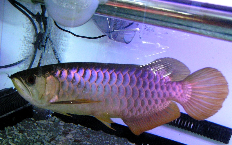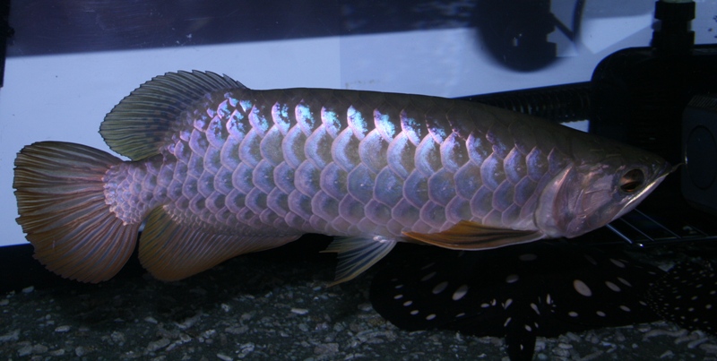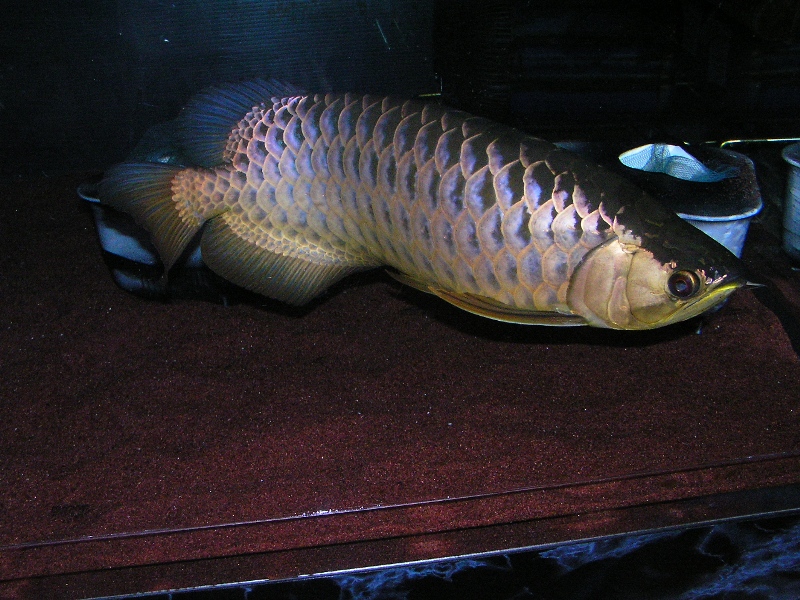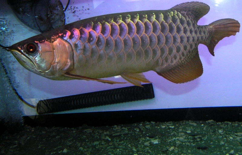 この大きさと顔のしわ(飼育環境が劣悪で若かくしてシワくちゃの老け顔のアロワナとは訳が違いますよ♪)、泳ぐ速度。