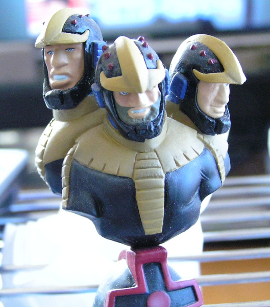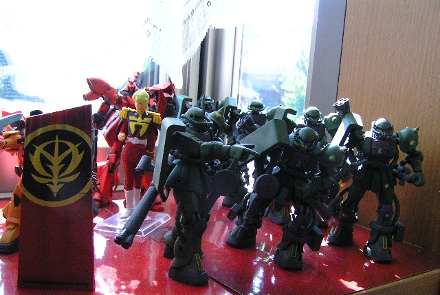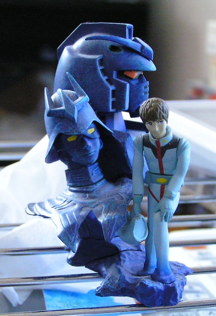 シャアとアムロとガンダム頭ブロンズ風像はジオンと連邦軍の境界線へディスプレイ♪