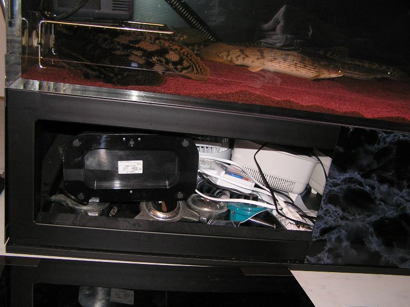 撤去したサーキュレーターは、水槽下の大理石パネルを開けると.....何という事でしょう!.....素敵な収容スペースに早変わり(ビフォーアフター風に読んでね♪)
