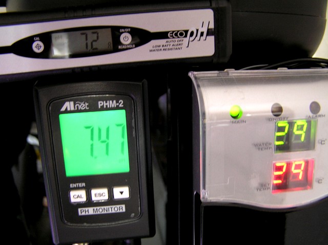 最低2日一回は水換えしてないので、極端な水質の急変は無いと思いますが、Phメーターを見て水質の急変が無いと確認の気休めですよねww