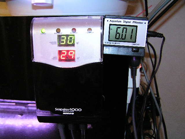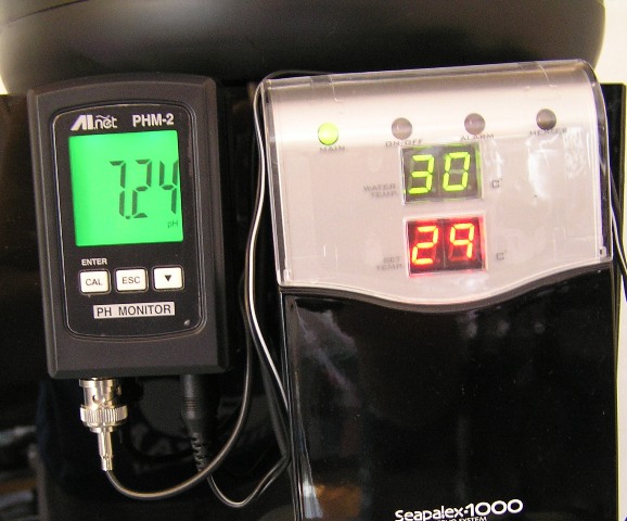 1800エイ水槽は注水時には一応Phを見ながら注水するのですが、いつもの様にPHモニターを見ると13.5とか........