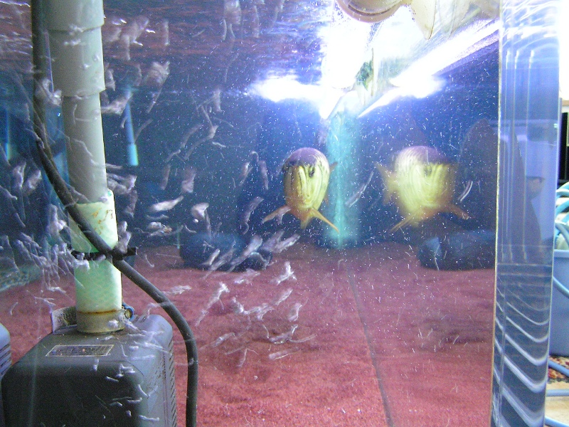 日曜日の水換えは、永久保存版にするために録画しておいたのを見ながら水換えの排水をしてたら、あまりに面白いので画面に夢中になってたら、排水ポンプで白変エンドリを吸いこんじゃいました。