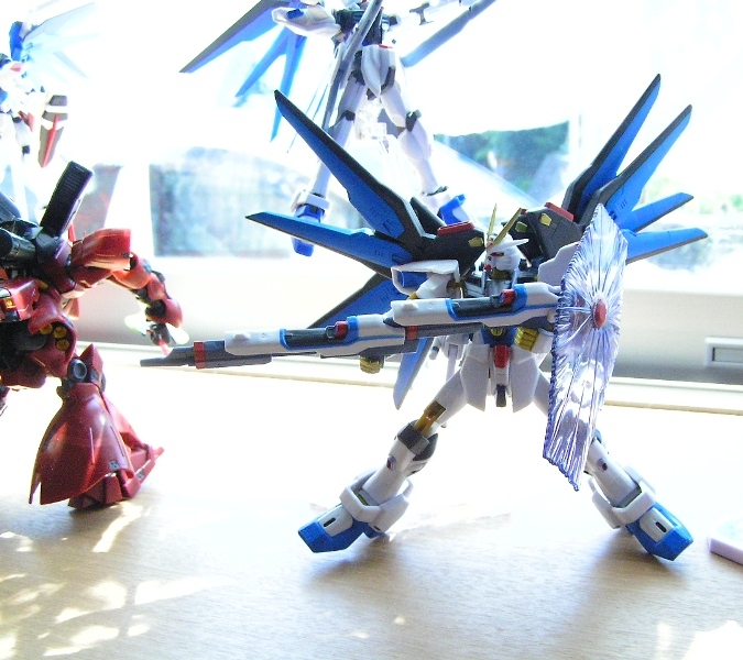 フリーダムガンダムにはデスプレイスタンドが付属されてましたが、このセットには付いてなかったので、もう一機フリーダムガンダムを買ってそのスタンドでディスプレイしなきゃww