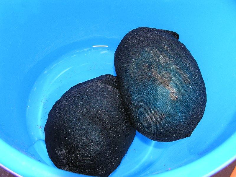 ネットに入れてからパンストに入れてあるのサンゴ砂をバケツに取り出し水でジャブジャブ。