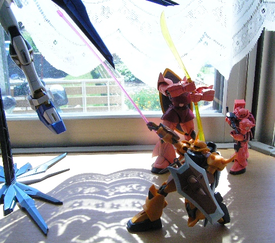 パノラマ左サイドはフリーダムガンダムとサザビの絡み♪