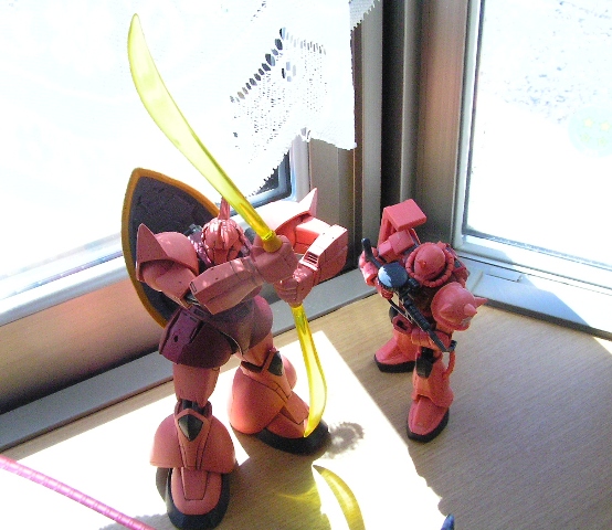 パノラマ右奥はシャア専用のゲルググとザクの1/200フィギア♪