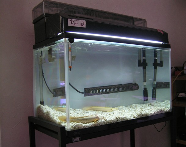 ここまで来たら、涼しい部屋でTVを見ながらキンキンに冷えたビールを一杯やりつつも時折水槽も眺めたりしながらの至福タイム♪