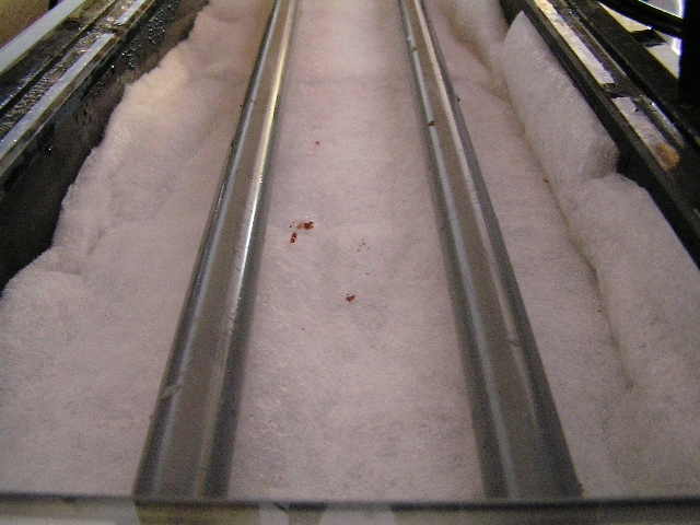 吸いこみ対策としてポンプの吸い込み口の下半分をテープで覆ってたのですがそれでも結構な量の砂がマットに付着してました。
