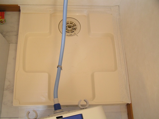 水槽部屋の給排水の受け皿として洗濯パンが設置してあるのですが、このパンと壁の間に隙間があり、その隙間に水が入り込むと嫌なんで隙間をテープで埋めてたんですが、今日は少し手直しを行いました。