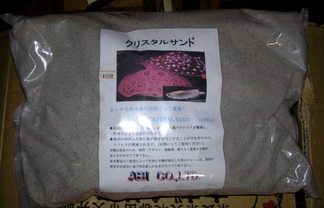 そこで今回のクリスタルサンドは白と黒の間の色で藍底過背金龍にもエイちゃんにも良い一挙両得な砂です♪