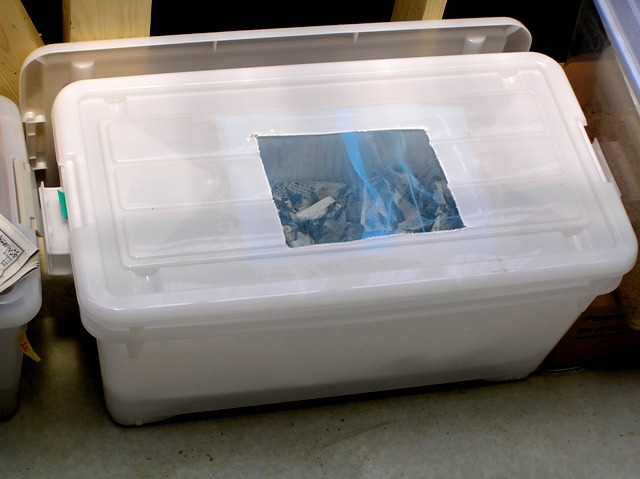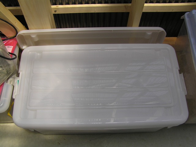 古いコオロギのストックケースも捨て去り、エイの水合わせに使用した衣装ケースを再使用♪