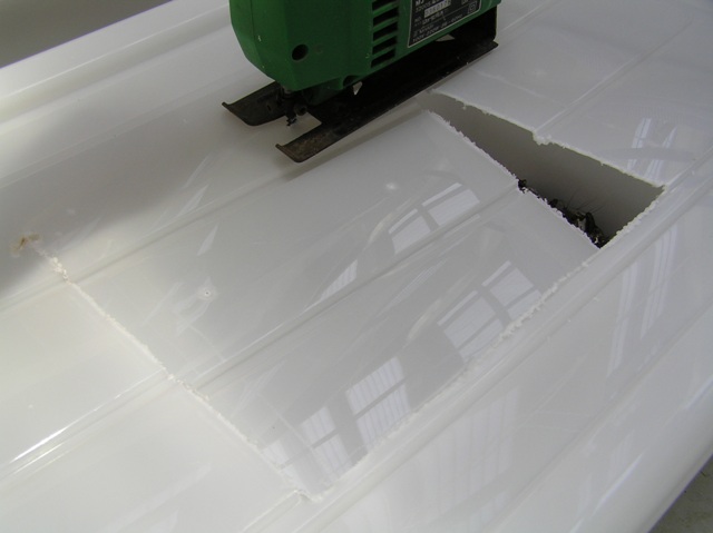 ドリルで通気用の穴を空けるのも面倒なんで、ジグソーで一気にカット!!
