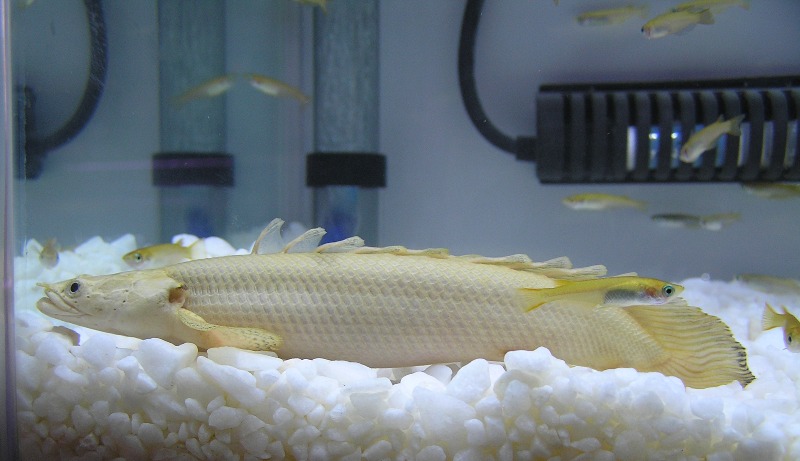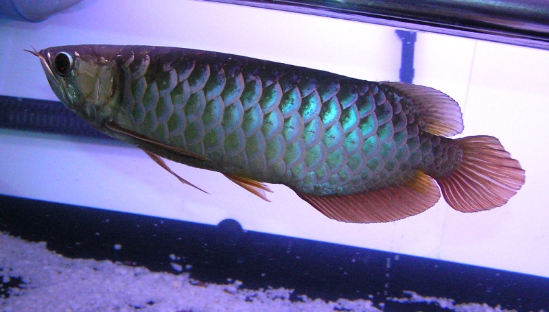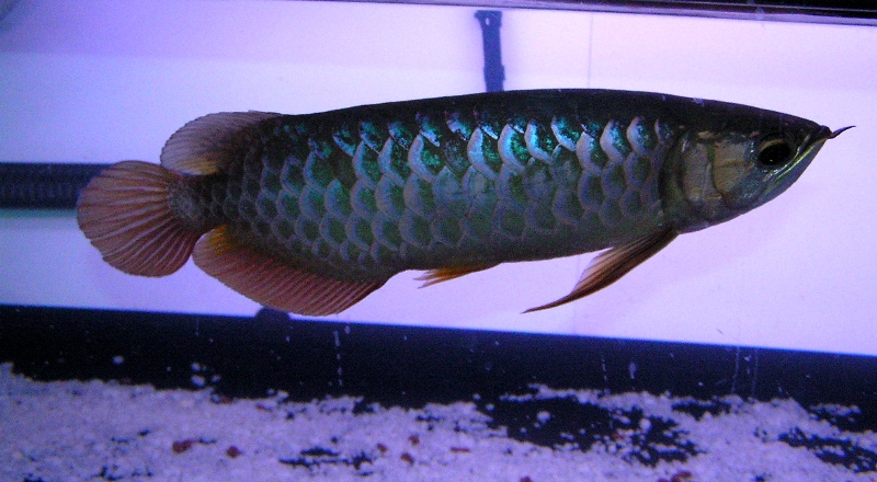 基本ジッと病で普段は水槽内を周遊する時間よりも水底でジッとしてる事が多いジッと病だったんですが、エイが餌を探し廻り水底を探索する事により、水底にジッとしてる事もできずに、アロワナらしく水槽内を周遊しております♪