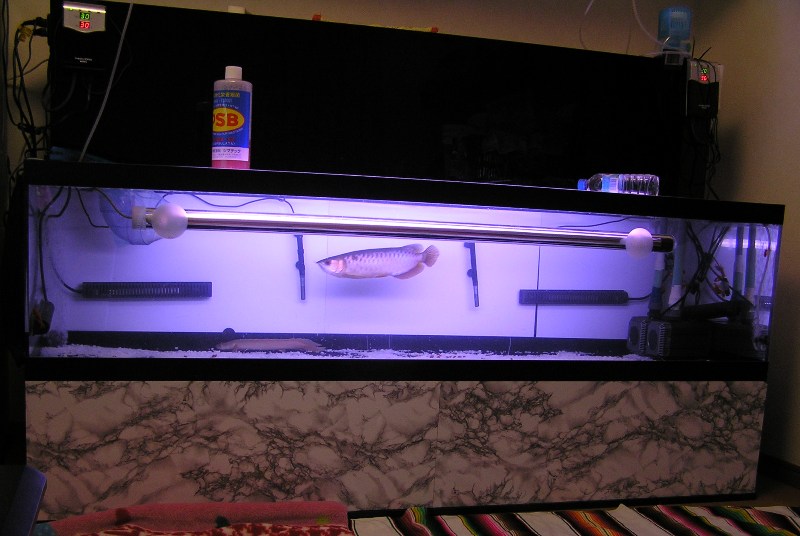 水槽部屋異動後、水中蛍光灯も採用しましたがイマイチ青くない!!