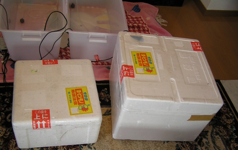 2個の衣装ケースにエアストーンとヒーターをセット♪