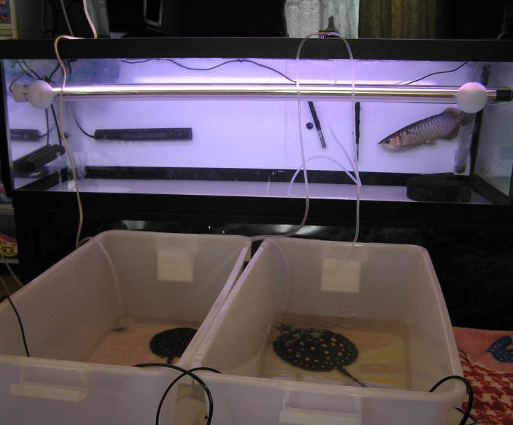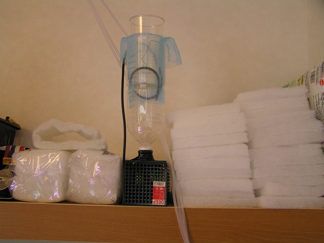 後は水を入れながら徐々に戻す水の量を増やしながら時期を見てコックを調節してポタポタかたツーと流れる程度に注水量を増やしながら同じ行程を何度と繰り返し6時間後の午後2時半に1800水槽に無事導入完了♪