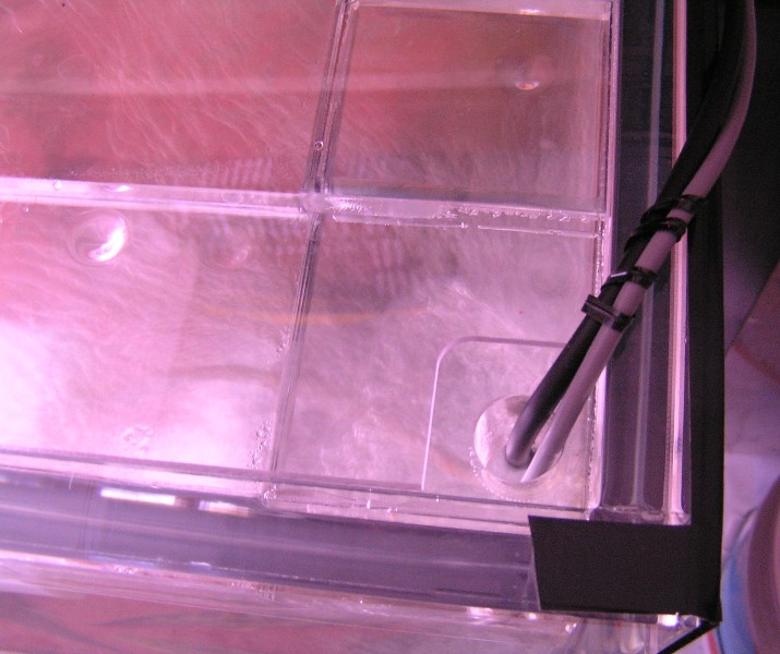 WDF製上部フィルターは水槽側面に載せる外掛け式でしたが、本フィルターは水槽のフランジに載せる内掛け方式としました。