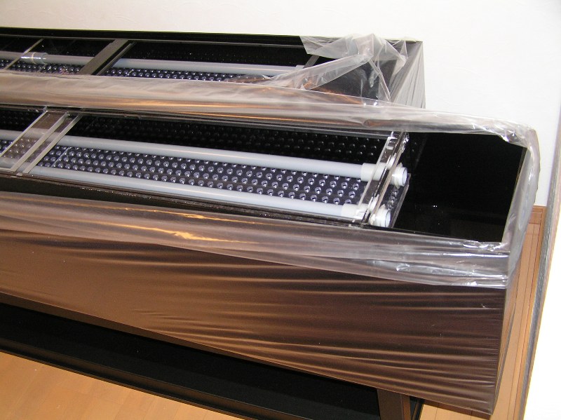 前回使用の2400水槽は重合接着の黒帯仕様でした。