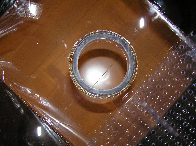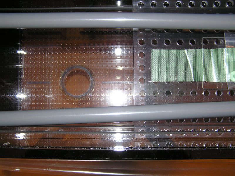 前面フランジの左右に水中蛍光灯の配線抜き用の穴を開けてあります。
