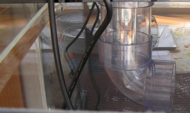 2重管の外側に濾過材があり濾過材→スノコ下を通過した水が内側のパイプから水槽へと流れ落ちる方式ですね。