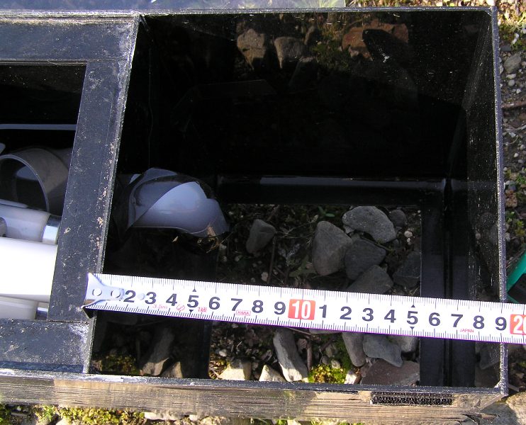 実際もう少しサイズ的に詰める事もできましたが、あまりギリギリに「すると水中ポンプが不自然な向きになったり設置できなくなるので安全圏10㌢としました。
