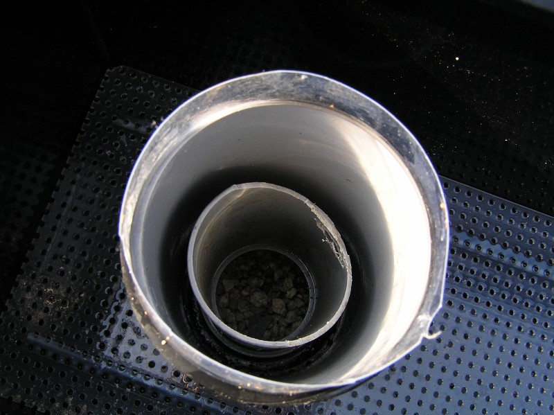 より沢山の濾過材を収容し水に浸からせる為に外側のパイプを延長してました。
