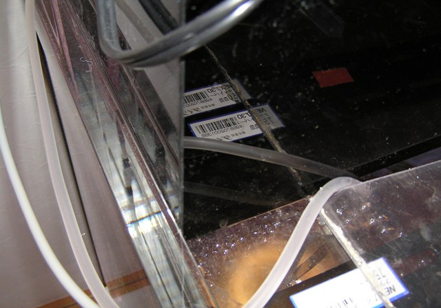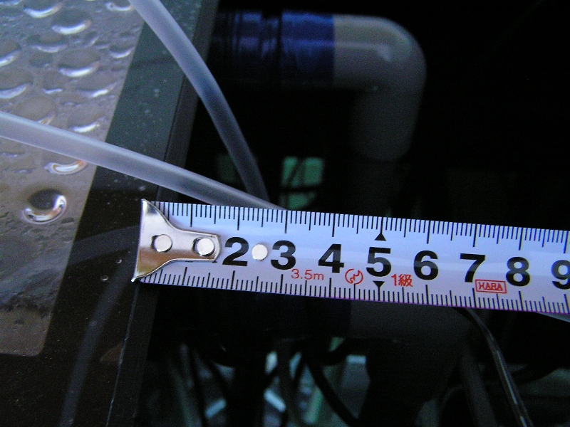 後はドライタワーを水槽左サイドにおっ立てる予定なんで、水槽左フラン時にプレスホース用穴2個と排水バイパスホース用穴1個の計3個の穴を開けてもらいました♪