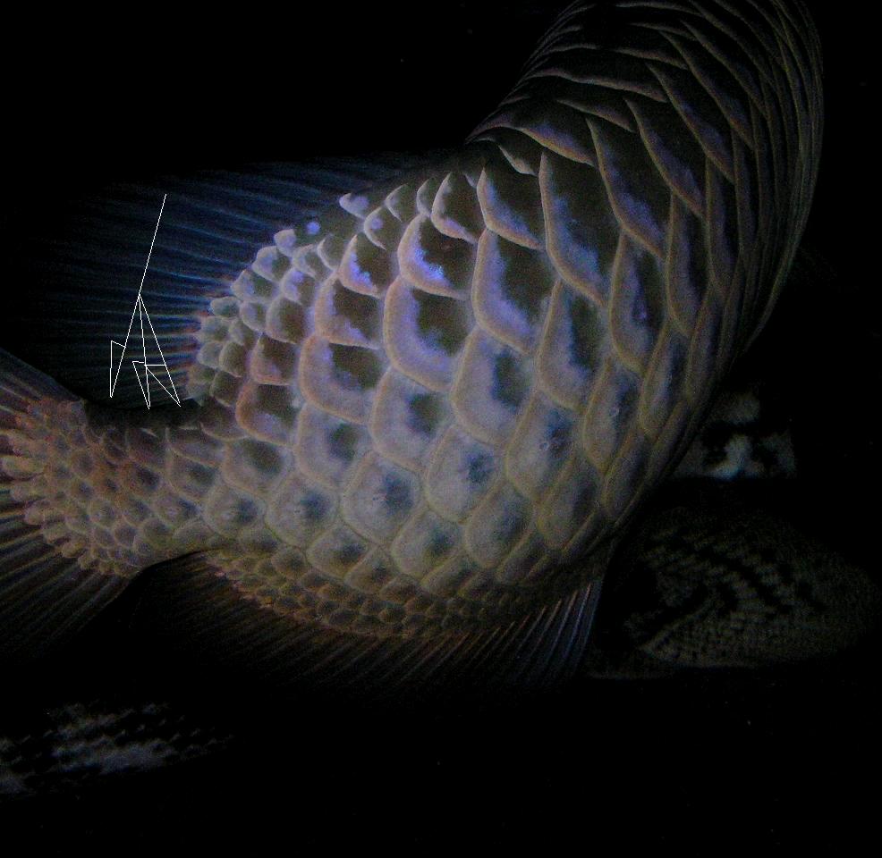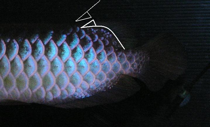 隠し技として尾鰭の付け根の部分の一番上の鱗♪
