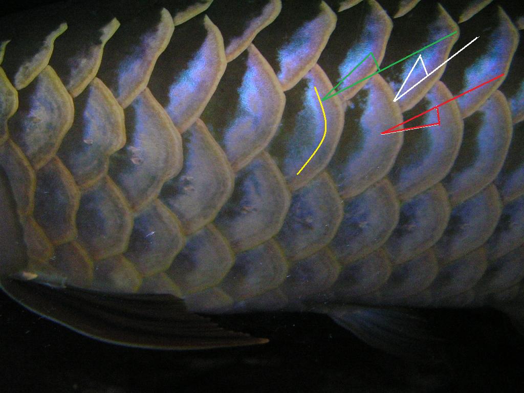 基底鱗と5列目の鱗の間の6列目に繋がる鱗も発色してる事もポイントです。