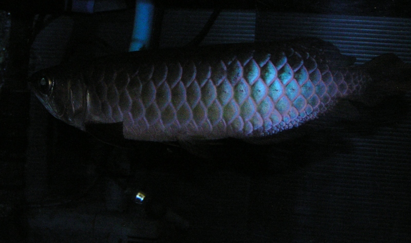 2005年のアジア アロワナ飼育再開後は元祖藍底過背金龍ワイルドブルーに始まり原種血統藍底過背金龍クレンブルー2匹の飼育を経て、現在の原種血統藍底過背金龍としては最高峰の位置に存在する個体を飼育するに至ってます♪