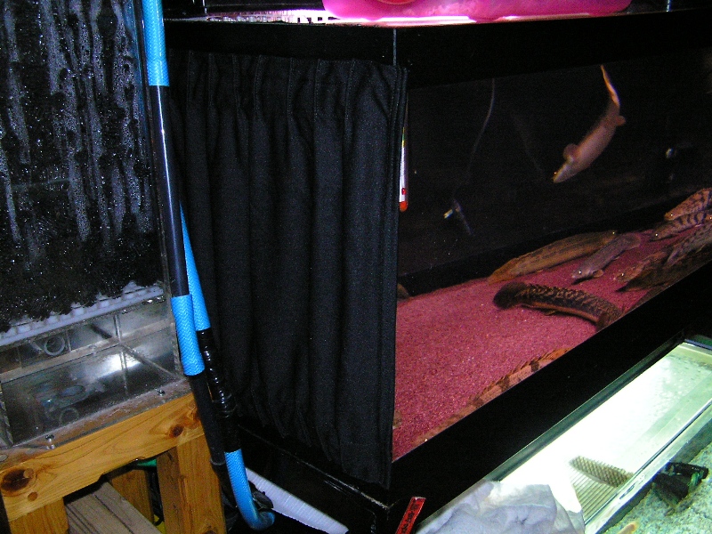 藍底維持飼育に燃えてた頃は水槽前面を黒い布で覆ったり、黄色系のライトを使用&飼育水はブラックウォーターという仄暗い環境で飼育してましたから、この時このカーテンがあれば非常に便利でしたね♪