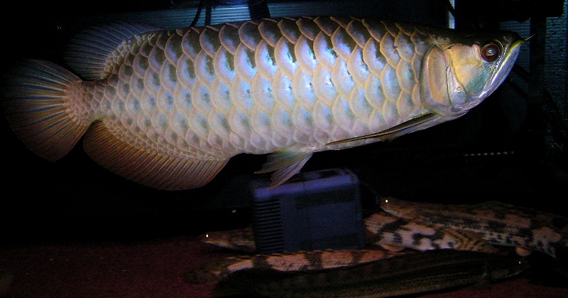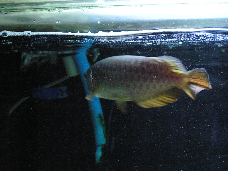 そんな2匹の過背金龍でしたが、成長に差が出始め金底は35㌢~にもなってましたが、藍底の方は~30㌢と、成長が遅く、「餌食わんのやろな~」って見てまして、尾鰭も2回自切りしており筋金入りの神経質個体でしたね。