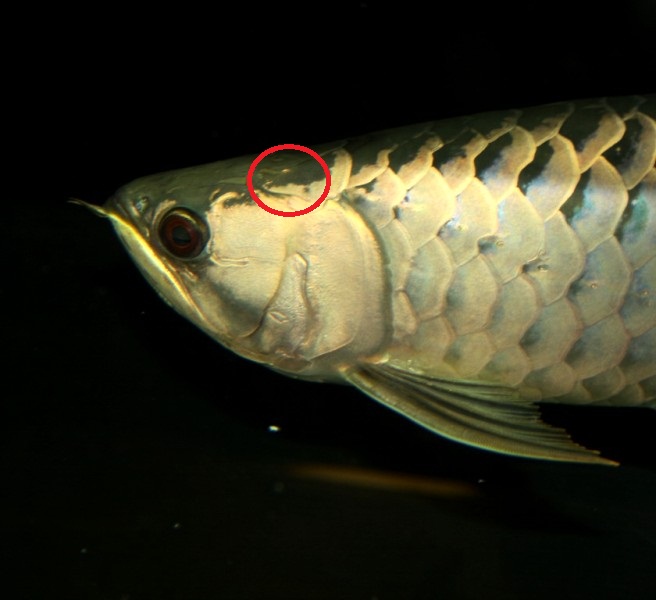 赤丸の頭部後方6列目最前列の鱗まですでに繋がってます。