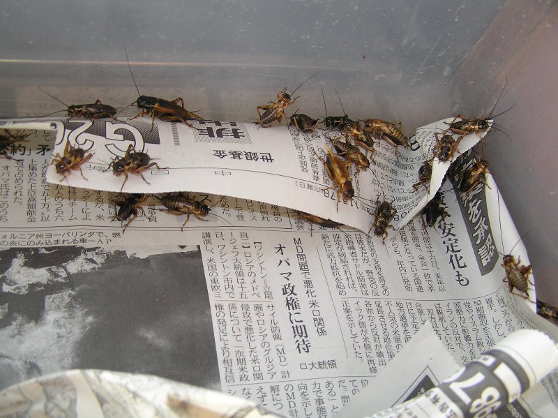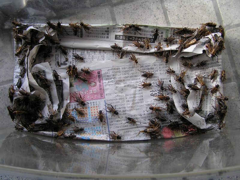 衣装ケースには羽無しの小さめのコオロギを....