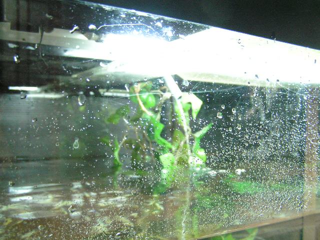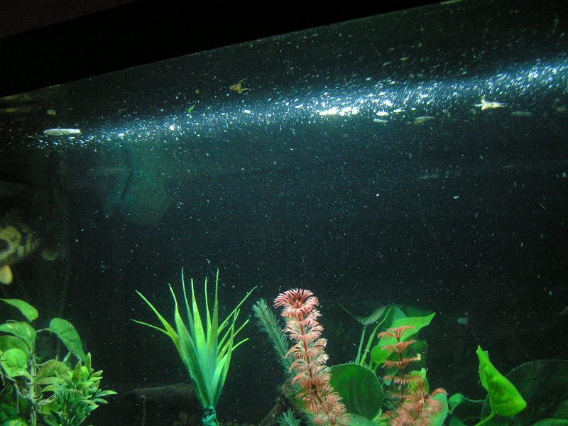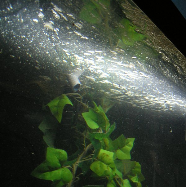 右サイドも全面ではなく中央付近に油膜があるだけで、水槽側面の水が沿って流れる部分は油膜はありませんでした。(流れるプールみたいな感じね♪)