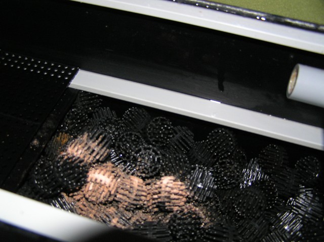 少し早いと言っても1800ドライ槽のマット目詰まりに拠るオーバーフロー防止のバイパスホースから水がチョロチョロ出てきてますから、マットの汚れは飽和状態ではありました(苦笑)