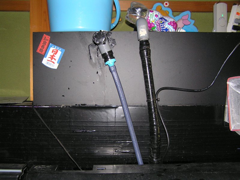 換水時に、水を抜いていくとマット上部の側面に開けたバイパスホースから水が出てました。