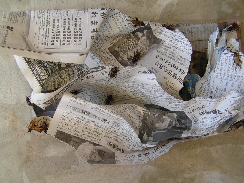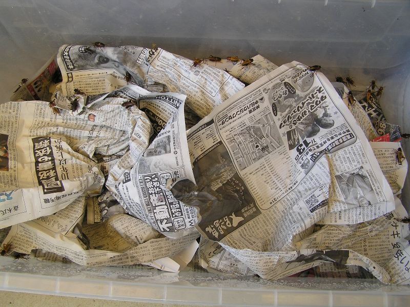 衣装ケースとプラケースの古い新聞紙と抜け殻や死骸を撤去。