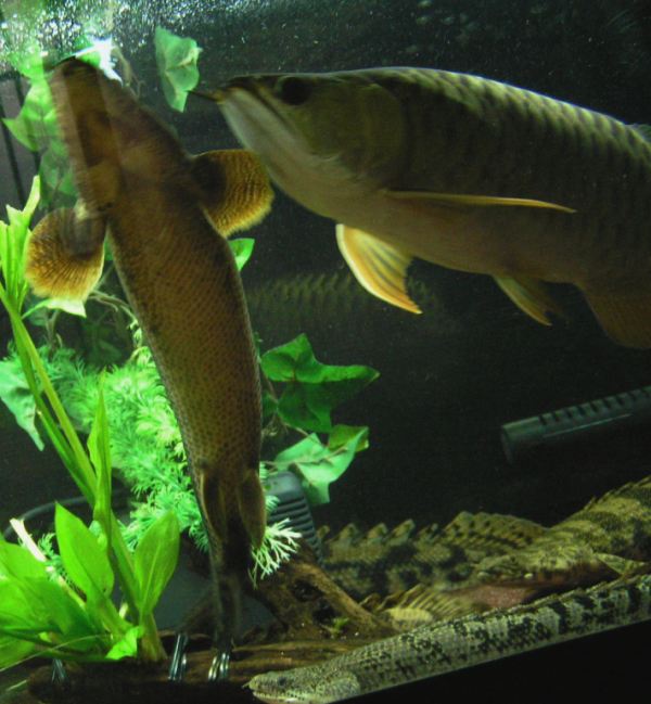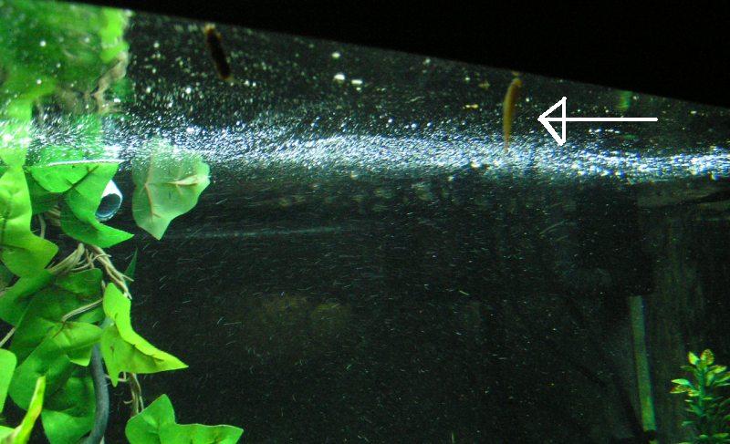 ビキエンとブリラプが収容された600水槽の前に何故か乾燥したメダカが?