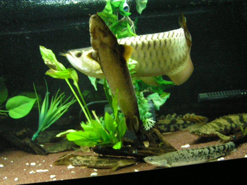 ここの面々は死んだ小赤でも食べるので、その干からびたメダカを興味本位で1800水槽に投下してみました♪