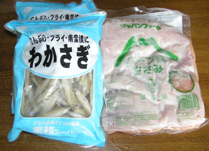日曜日に業務用スーパーで冷凍ワカサギと冷凍ササミを買ってきました。