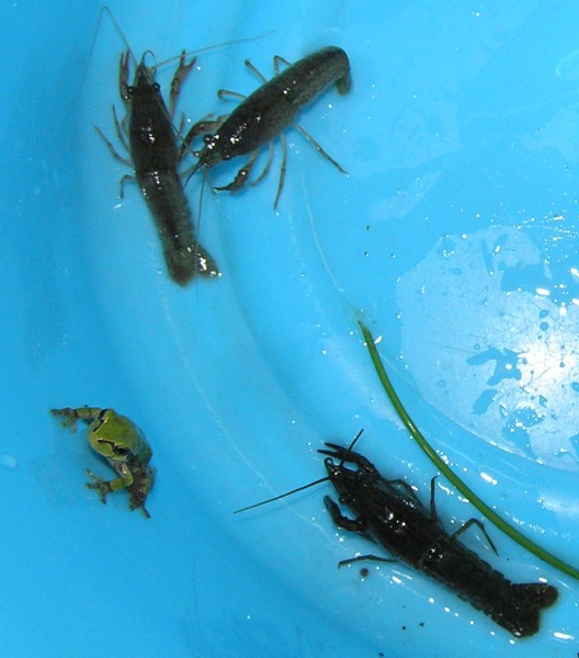 今日のBgan君のメニューはザリガニ3匹に野外捕獲のアマ蛙(又かい!)
