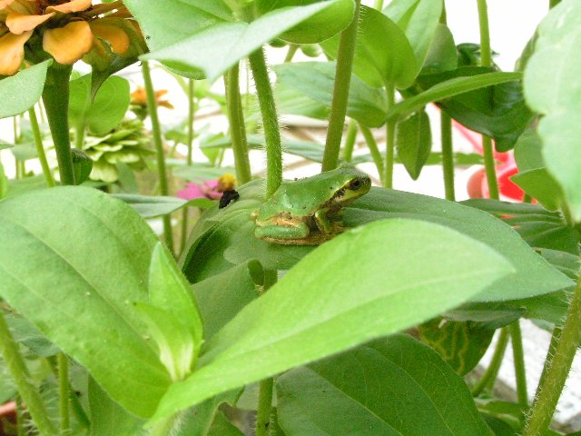 カエルを見つけると嫁や娘が教えてくれるのですが、「多分葉っぱの虫を食べに来とるんと違う?」と、言うと「捕らんといて!!」やて(笑)