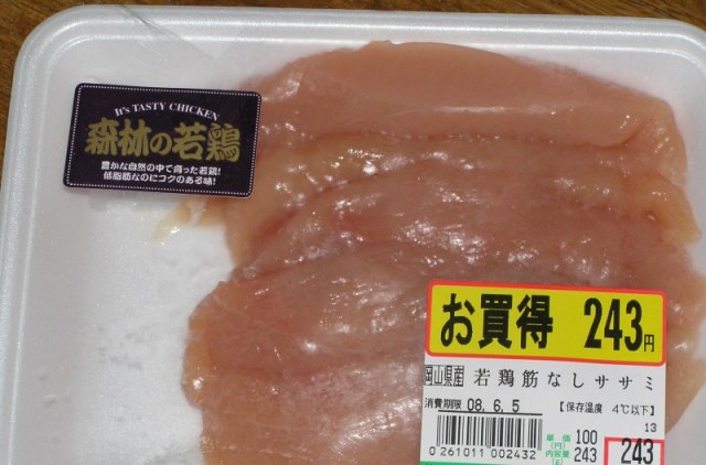 嫁にも胸肉は筋が多いとかなんとか話してたんで、気を効かしたのか?どうか?は、知りませんが、筋なしささ身を買ってきてました♪