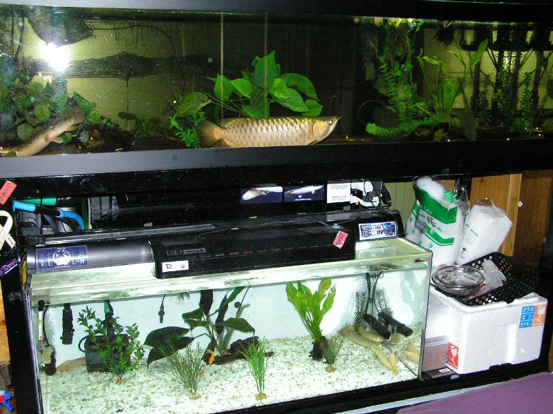 メニューは1200&1800&600水槽の水換えに1800ドライ層のマット清掃をしていると時間は8時半、急がねば!!
