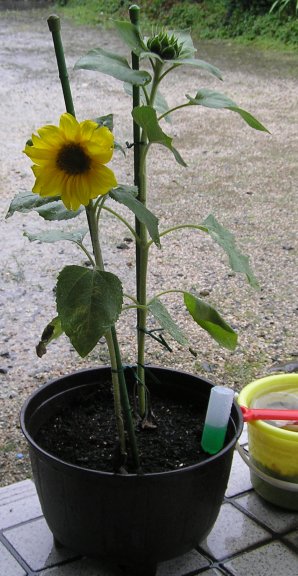 昨日、帰宅時に娘が育ててる向日葵が咲いてました♪